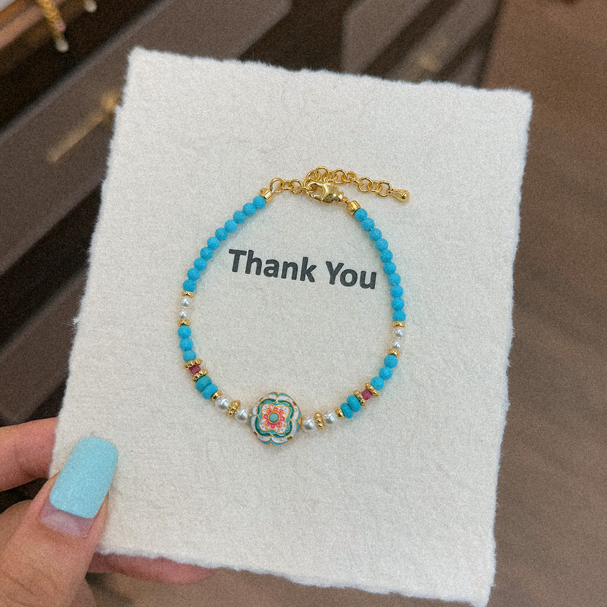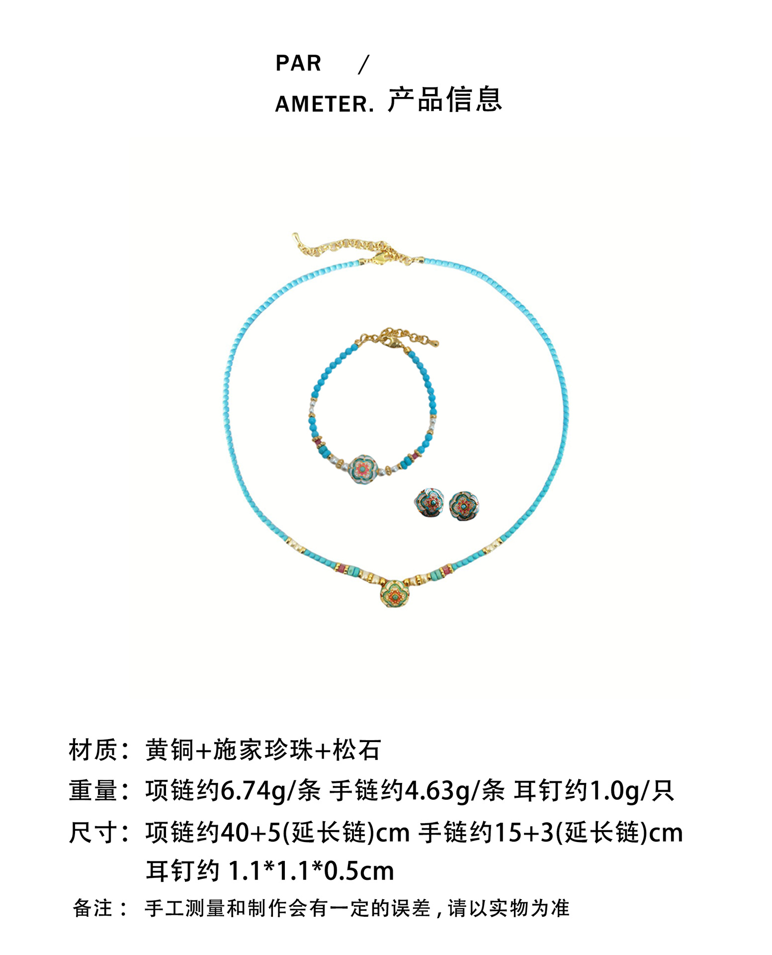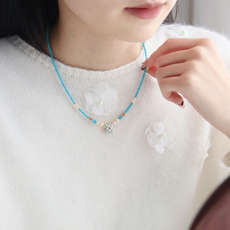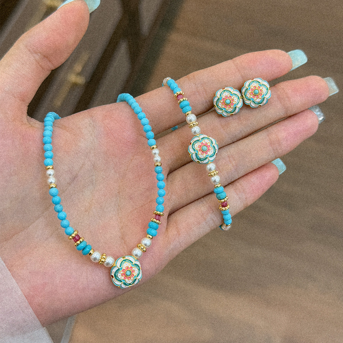 Vintage exquisite oil-drip micro-inlaid zircon turquoise Swarovski pearl beaded necklace, light luxury niche high-end clavicle chain