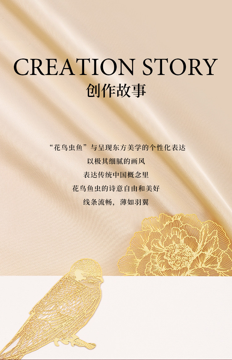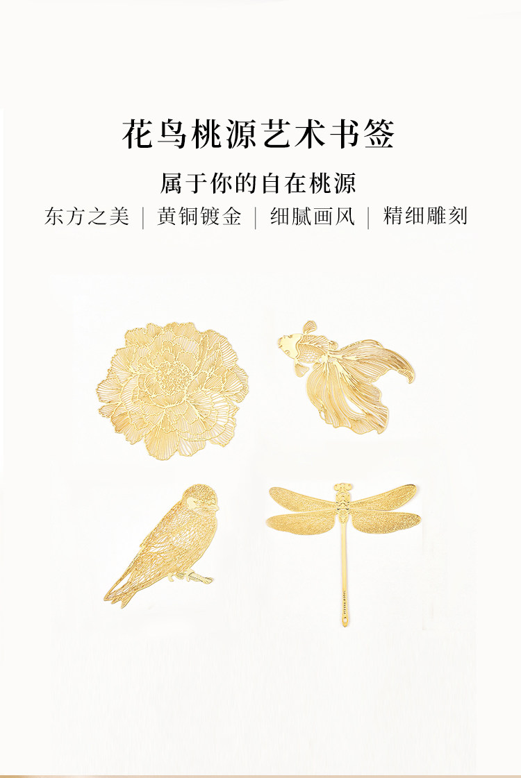 Metal bookmark with floral and bird motifs, brass plated with 18K gold, high-end, exquisite, classy, classical Chinese style, custom-made, birthday gift for best friends, cultural and creative gift for Teachers' Day, gift for teachers
